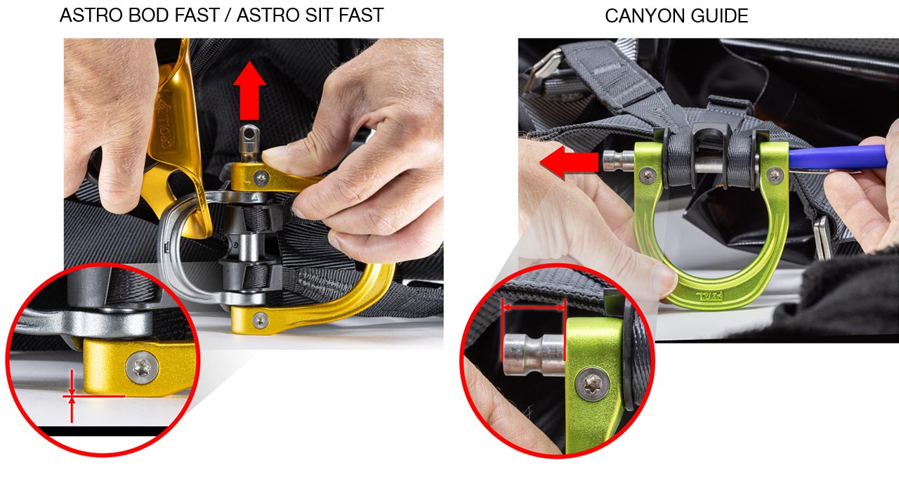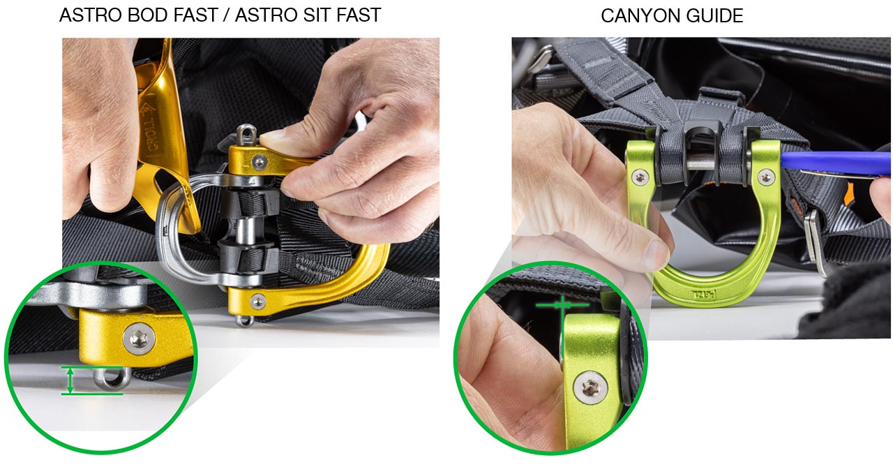 Contact your local Petzl after-sales service via the after-sales service section of the contact form to get a replacement kit (D-ring and screws) suitable for the gated ventral attachment point of your harness. The kit will be sent to you free of charge, with the associated installation instructions.