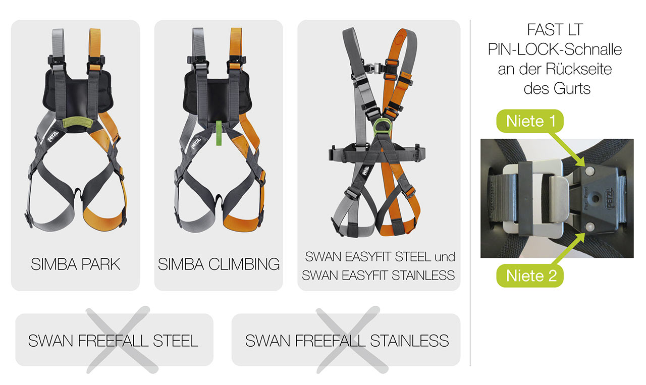 Betroffene Gurt und Lage der FAST LT PIN-LOCK-Schnalle: