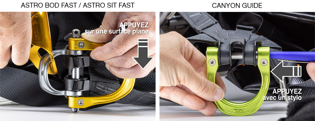 Cas A : Des manilles sont installées sur votre harnais (possible sur les harnais ASTRO uniquement). Vous pouvez continuer à utiliser temporairement votre harnais jusqu’à remplacement des pièces.