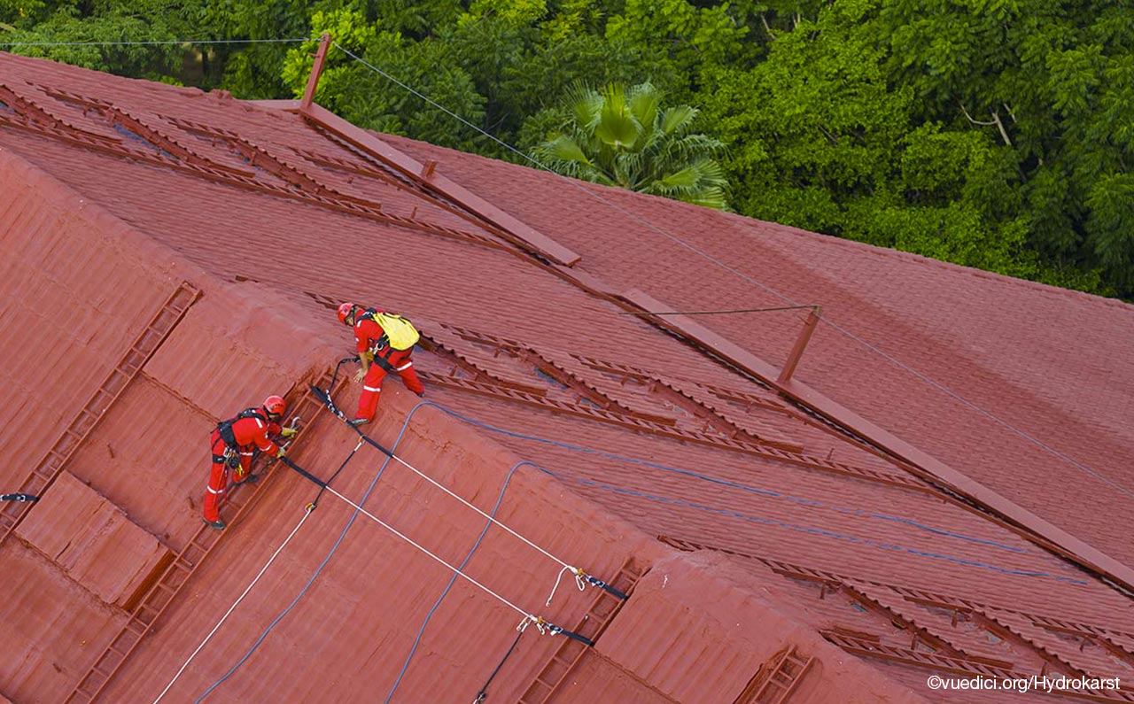 Posa delle reti paramassi a cura di Hydrokarst – Isère, Francia
