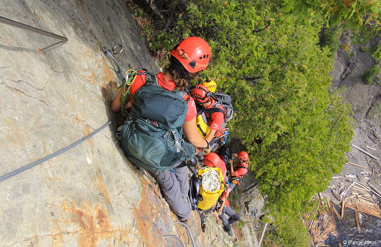 Il Québec ha un'estensione tre volte maggiore della Francia ma ospita solo 8 milioni di abitanti. Per la maggior parte, le sue montagne sono situate nella zona orientale della provincia e possono raggiungere i 1300 metri di altitudine. Si tratta di una terra bellissima, disseminata di laghi e di fiumi, particolarmente apprezzata dagli appassionati di outdoor. La sua lontananza e la sua natura selvaggia lo rendono un territorio davvero speciale per i professionisti del mondo verticale. Per capire questa particolare specificità, nell' estate 2016, abbiamo incontrato alcune guide specializzate nel soccorso sulle vie ferrate.