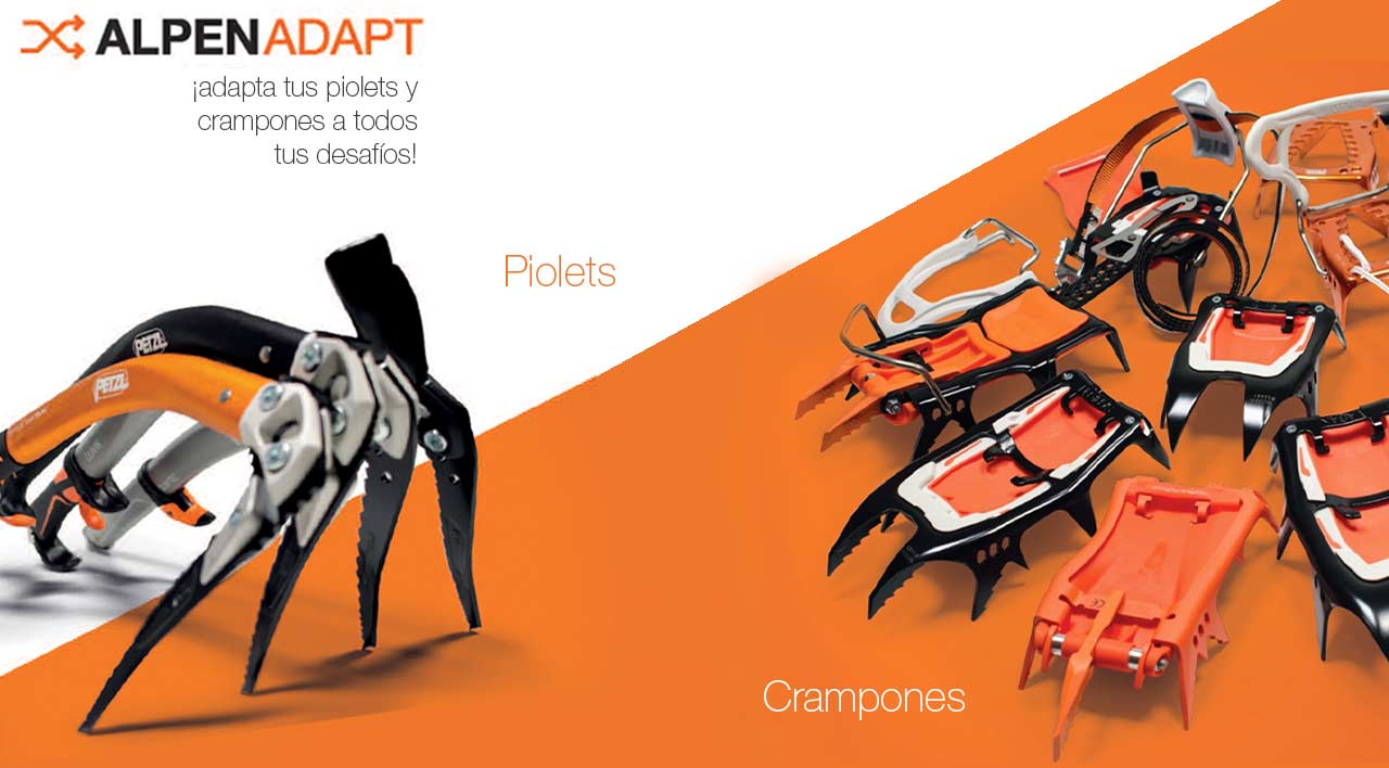 Para los que utilizan los piolets y crampones técnicos Petzl, ALPENADAPT ofrece un sistema modulable para intercambiar fácilmente los diferentes componentes y adaptarlos a tus necesidades en la montaña. Así puedes cambiar las hojas de un piolet para pasar de la escalada alpina a la escalada en hielo o mixto. Del mismo modo, se pueden cambiar los accesorios para aligerar el peso del piolet y aportar funcionalidades indispensables a los diferentes terrenos. También para los crampones, se pueden cambiar los bloques delanteros para adaptarse a la marcha por glaciar, el alpinismo técnico o escalada en hielo; cambiar las fijaciones para aproximación o alpinismo, o incluso cambiar los bloques traseros para más durabilidad o ligereza.