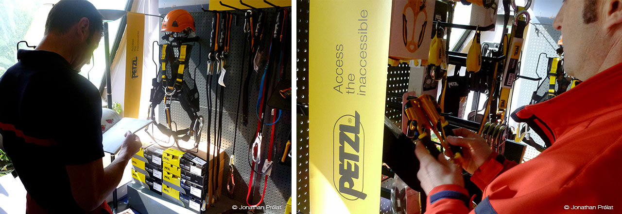 Les pompiers au Showroom Petzl devant les nouveautés 2015.