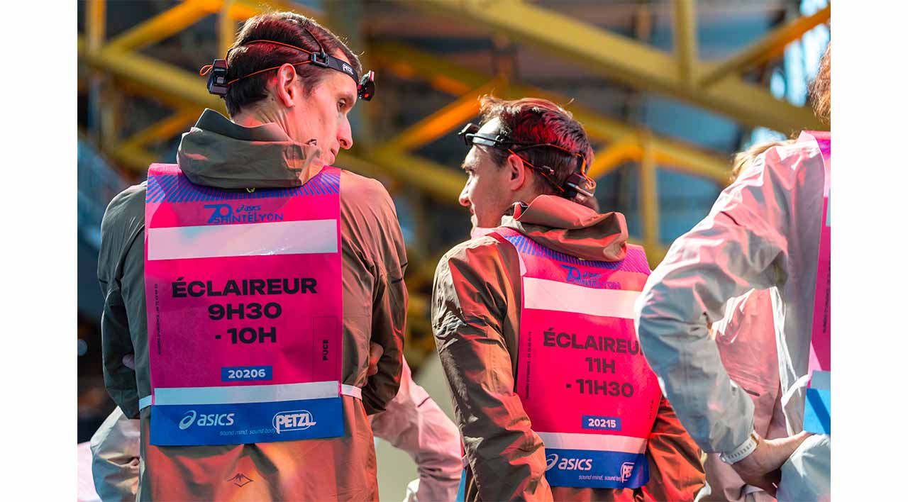 Le 30 novembre, des milliers de coureurs s’élanceront pour la 71ᵉ édition de la Asics SaintéLyon®. Fidèle à l’événement, Petzl a longtemps offert une assistance technique pour les lampes frontales à Sainte-Catherine. Depuis 2023, en partenariat avec Asics, la marque va plus loin avec Les Éclaireurs : des bénévoles qui courent pour aider, motiver et accompagner les autres dans la nuit. Par binômes ou trinômes, ils se répartissent dans les sas de départ, tels des « pacers » bienveillants. Pour comprendre cette expérience, rencontre avec Cécile, Adrien et Pascal, trois éclaireurs aux parcours différents mais à la même passion.