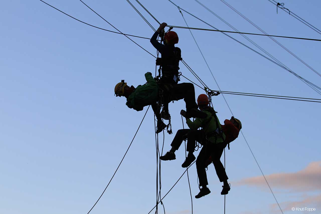 Two competing teams conducting pick-off maneuvers during the "Rescue an injured victim" finals - Uppsala, Sweden