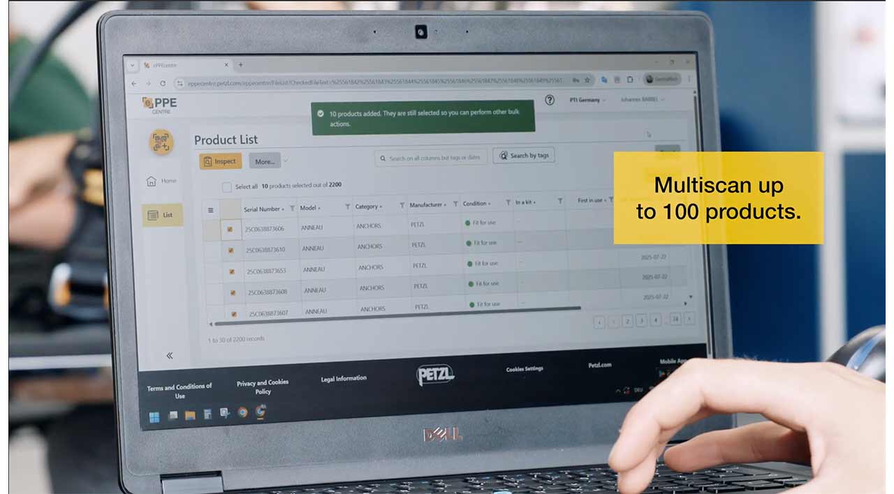 Regular inspection of Personal Protective Equipment (PPE) is a legal requirement and contributes to user safety. While it may start out as a time-consuming marathon, it can be optimized. Petzl is more than a PPE manufacturer: we also use cutting-edge technologies to speed up the inspection process. Since its launch in 2024, ePPEcentre has dramatically simplified PPE management, helping you save time.