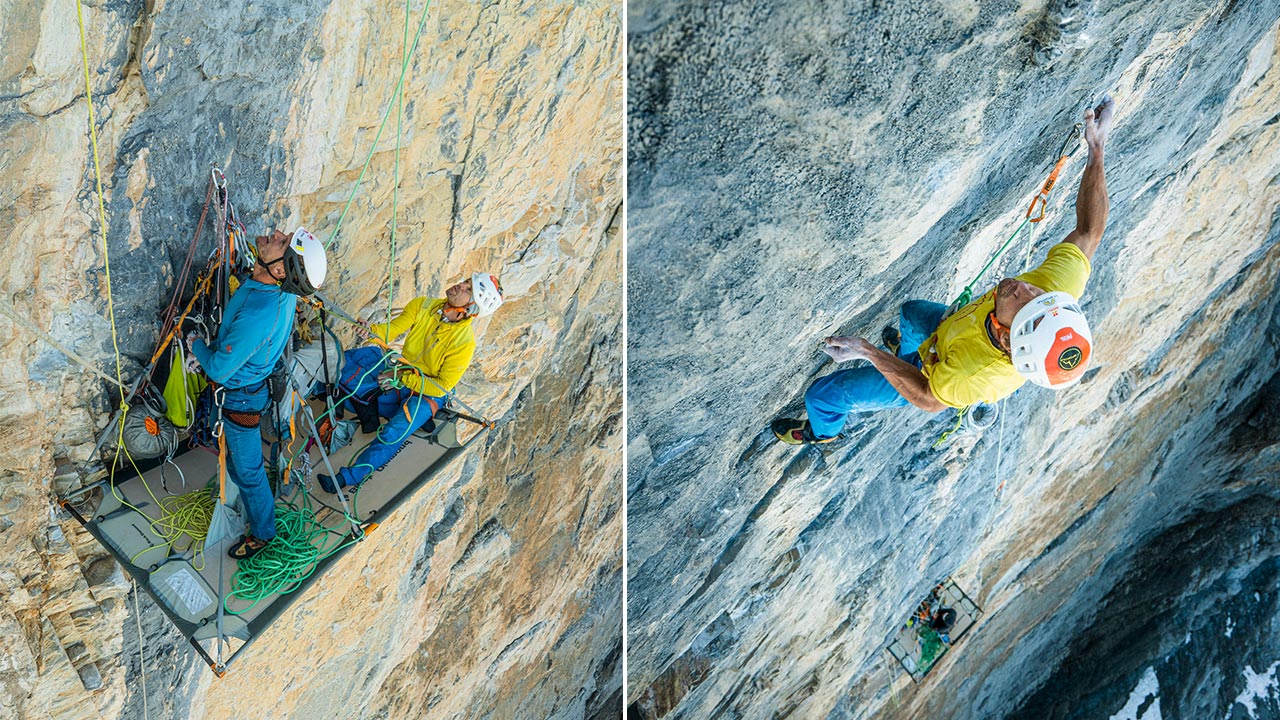 Au premier regard, Stephan Siegrist et Roger Schäli paraissent très différents : Siegrist est un père de famille qui a les pieds sur terre, bien installé dans un village idyllique suisse et Schäli est un grimpeur nomade, toujours en vadrouille avec son bus camping. Pourtant les deux ont une longue histoire et une grande passion pour les voies d’escalade difficiles. Ils ont partagé pendant quelques années un appartement à Interlaken. Cette collocation était connue au-delà des frontières suisses. La porte de Siegrist et Schäli était toujours ouverte, ils accueillaient continuellement des alpinistes et des grimpeurs. Il y a même un article qui a été écrit sur cette fameuse collocation. Les deux suisses ont grimpé ensemble des voies difficiles et sont partis en expéditions. Puis leurs chemins se sont séparés.
