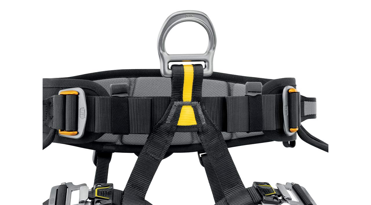 Per gli interventi in sospensione: il punto di attacco ventrale metallico dell’imbracatura FALCON ripartisce il carico tra la cintura e i cosciali quando si è sospesi.
