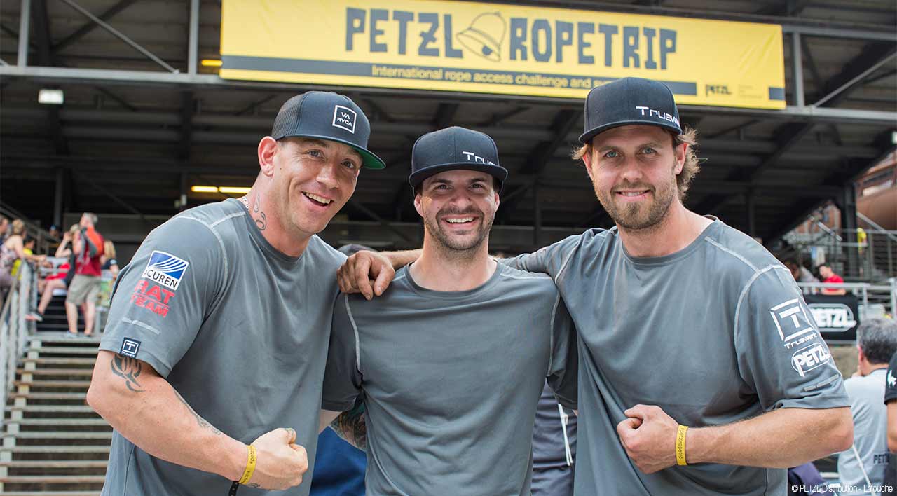TOM: Yeah, similar to the team challenge. Then we just ran through a lot of the IRATA (Industrial Rope Access Association) rescues and rebelays. More than anything, we spoke to each other and got to know each other. I’d met our other teammate, Louis, once before on another job, maybe two years ago.